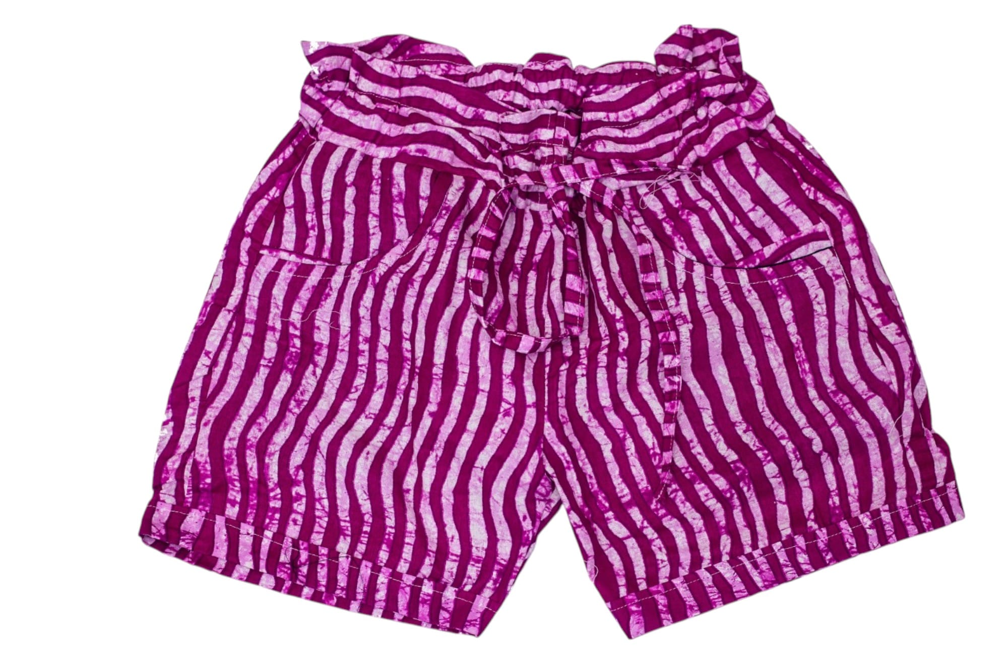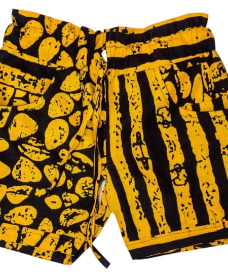 Crafted from lightweight, breathable fabric and made with authentic Togo African batik, these shorts are perfect for warm days and easy layering. The ruched waist with adjustable drawstrings offers a flattering fit that’s both comfortable and flexible for all-day wear.